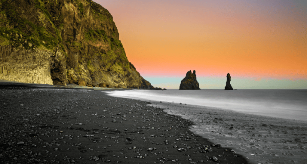 Reynisfjara Beach – Pantai pasir hitam dengan tebing basalt dramatis